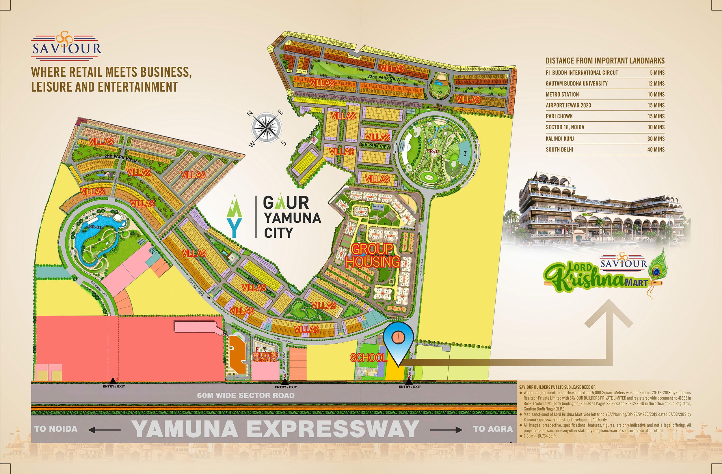 Lord Krishna Mart is a beautifully designed convenient shopping center on Yamuna Expressway, Greater Noida. The project is an integral part of Gaur Yamuna City Township in 250 Acres. The Project will cater to the commercial requirements of approximate 17000 families expected in the township. The highlight of this project will be the 108 ft tall statue of LORD SHRI KRISHNA in "SHRI RADHA KRISHNA MART” which is opposite to the project and attract visitors on the Yamuna Expressway. The upcoming Jewar International Airport will also provide a great demand and footfall across the area. The project is a rich blend of Fun, Shopping, Entertainment, and Dining. The project can be reached easily through EXIT 2C from the Yamuna Expressway.